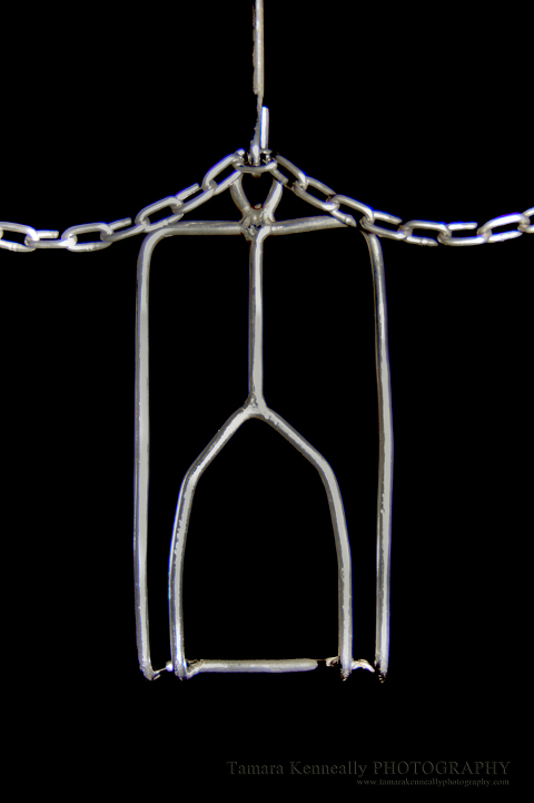 This is a shackle at a poultry abattoir. Chickens are grabbed from crates and slammed on to this contraption. They hang here, by their feet, until they die. The shackles are attached to a conveyor belt that then takes the chickens on to the killing floor, their throats are slit (many are missed) and then they are dumped in to boiling water. A large percentage go in to the boiling water without their throats slit and are still alive.