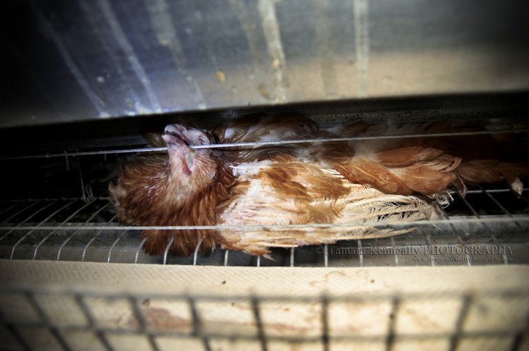She died like this. There was nothing humane about it. Nothing. She was grabbed and thrown in to this transport crate on Tuesday night. She was literally squashed to death from overcrowding in that crate. After 18 months living on an egg farm (a farm that produces, cage, barn and free range eggs), this is how it ended for her.