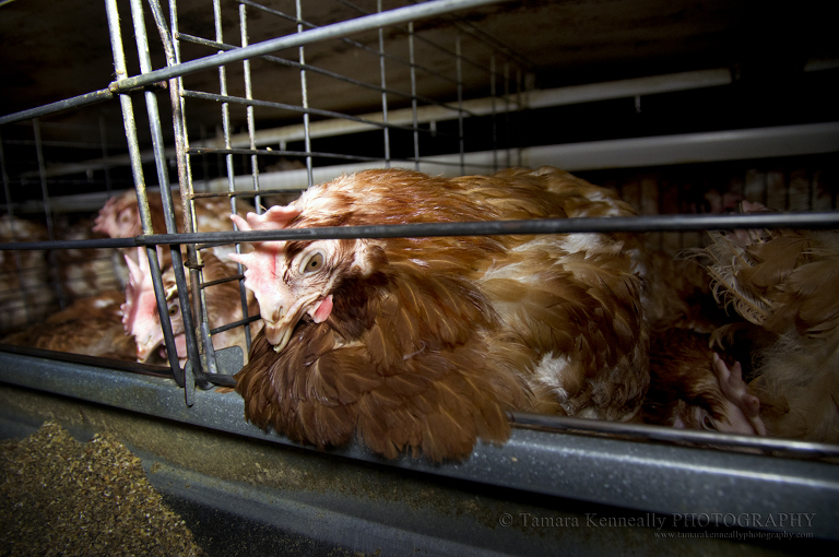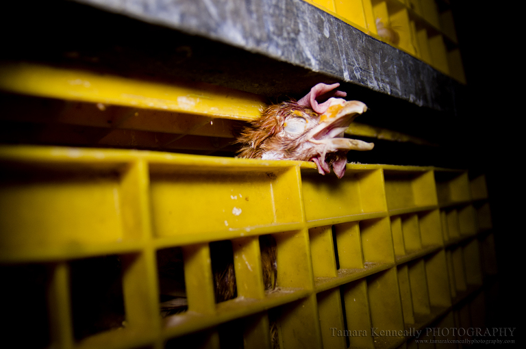 Through the small holes in the transport crate, I could see that she had given up. She had nothing left. Nearly two years spent as a commercial egg layer, she had ended up at the abattoir squashed in this transport crate. There was no hope left for her. She had nothing left, not even the will to look at me.