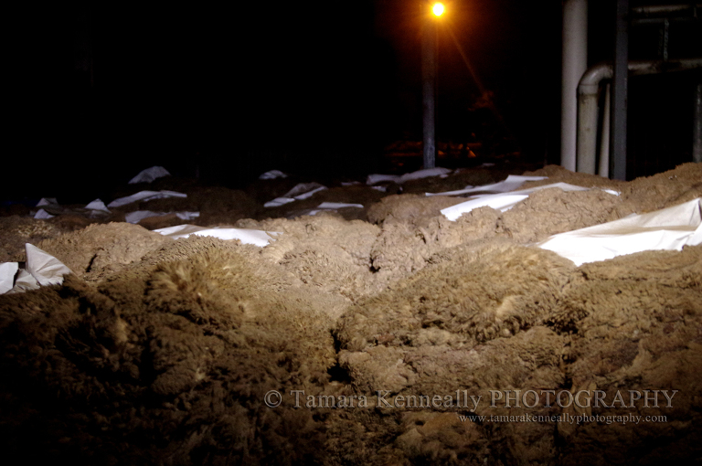 Piles and piles of sheep skin and wool bundled up from last nights slaughters.