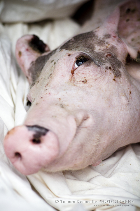 Little Tommy was so weak, he had no fight left in him. He was treated at the vet the next morning after rescue, but he just wasn’t strong enough to push past the cruel start in life he had been given. He never knew his mother. He never swam in water. He never saw the sky. He never walked on dirt. He did, however, die with people who cared about him and who knew he was more than just a meal on a plate and a dollar sign.
