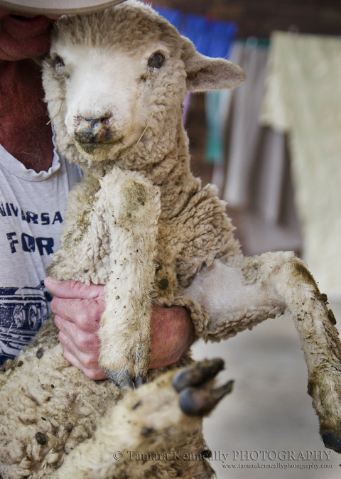 She was found on Friday March 6,2015 wandering alongside the weir which runs parallel to the Midland Highway. She was found weak, emaciated, terrified and suffering from pneumonia. The ranger was called to pick her up and he took her to our vet. Our vets treated her for pneumonia, wormed her, liced her and then called us – “We have a little lamb here. Would you like her?”. How could we say no!