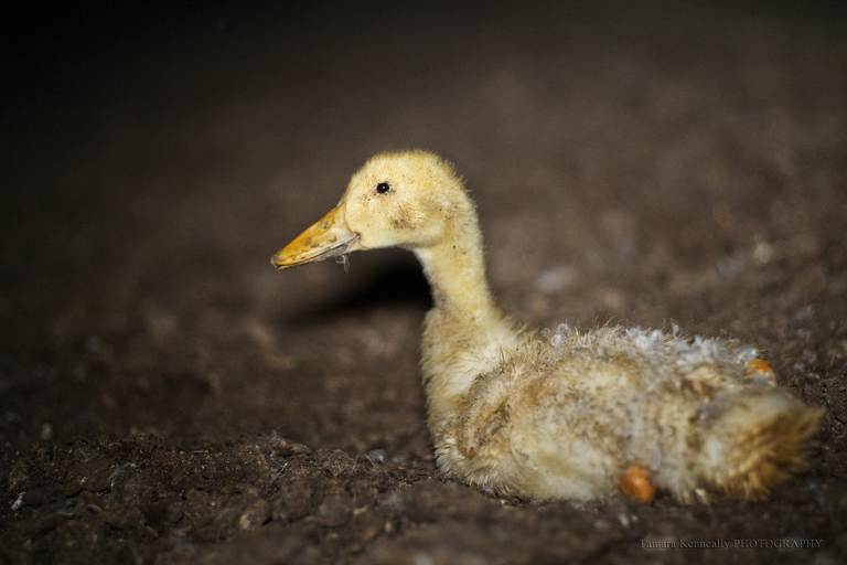 She dragged herself around that huge shed full of thousands of Pekin ducks all born and bred to be a meal. Her leg had suffered a massive break at some point and she could not put weight on it, so she dragged it around with her and used all her strength to hop and slid around the shed following her shed mates. She was only 4 weeks old, but she had already been handed more suffering than most could handle.