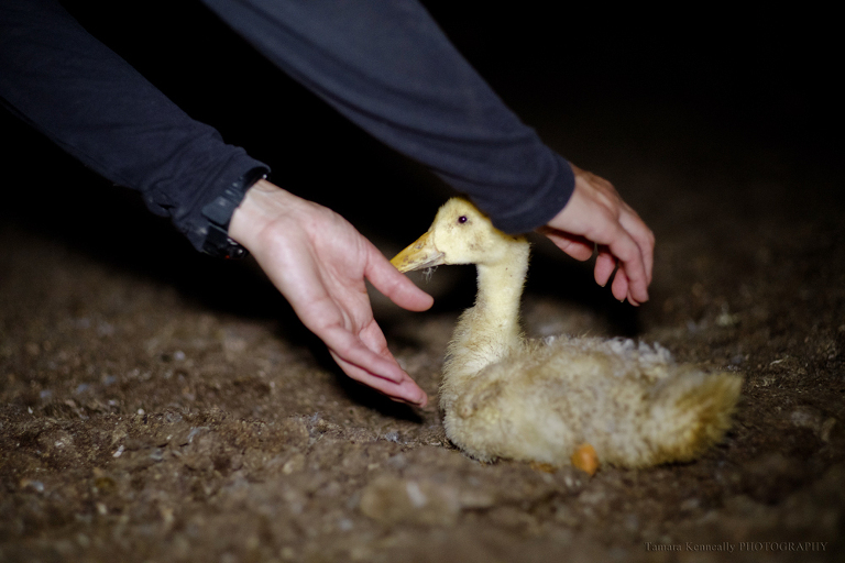 Yes, Legolas was rescued, but thousands of other weren’t. Thousands of others still sleep on their bed of duck poo in this free range farm until it’s time for slaughter. Being completely blind, Legolas had no idea who was there in her presence, but she knew someone was there. She had no idea that the hands that were about to pick her up were going to shield her the best they could from harm. She had no idea that the person picking her up only wanted kindness and love for her. Legolas was petrified, but she was rescued. She was taken away from that place.