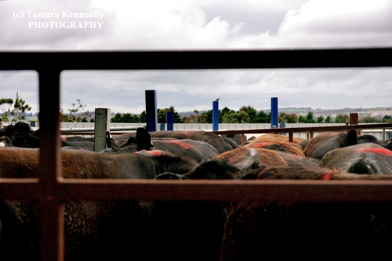 We drove past a cattle holding yard. The place they keep animals until they are ready to load them onto the trucks and then drive them to the abattoir. They were all penned in together with very little room and no water or food. They waited there all day and all night.